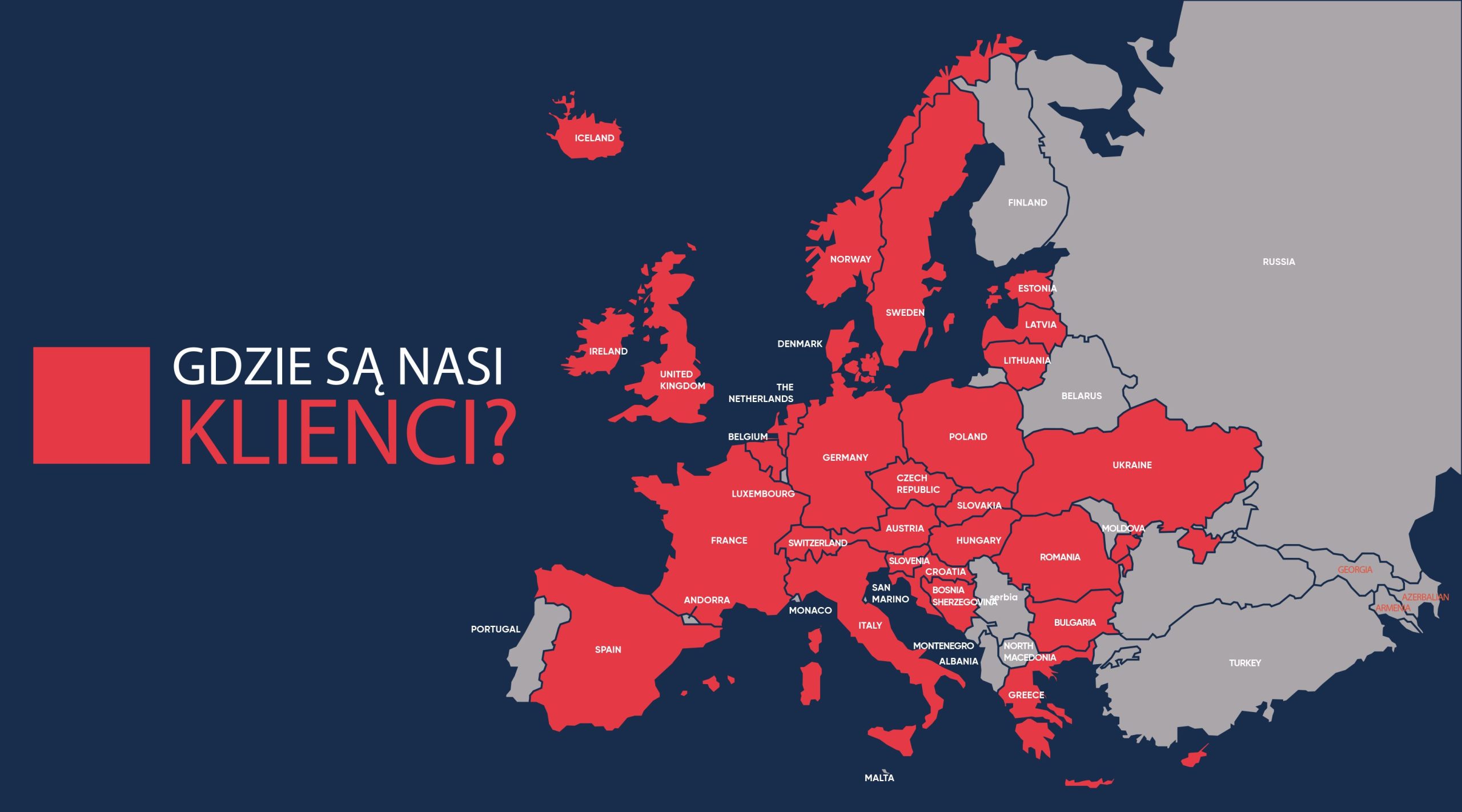 Zaufanie, jakim obdarzają nas klienci z całej Europy, potwierdza jakość naszych produktów oraz skuteczność rozwiązań, które oferujemy. Nasza marka jest obecna w 28 krajach, współpracując z partnerami o różnym profilu, skali i specyfice działania.